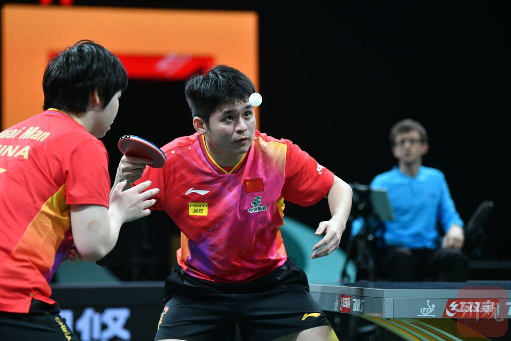 根據(jù)本屆國際乒聯(lián)混合團體世界杯的比賽規(guī)則,將先進行混雙比賽,再進行女單、男單的較量,如有必要,才會進行女雙、男雙的比賽。而且每場比賽,只要任何一方率先贏下8局比賽,就將獲得比賽的勝利。因此中國乒乓球隊率先派出了林詩棟/蒯曼迎戰(zhàn)澳大利亞隊的盧偉/洪劍芳。林詩棟和蒯曼是中國乒乓球隊的一對00后組合,配合默契,也是世青賽冠軍得主,今年還拿到了中國大滿貫的混雙冠軍。雖然暫時沒有世界排名,但他們的實力也要比對手高出一籌。結果在這場實力懸殊的比賽中,林詩棟/蒯曼花費不到30分鐘的時間,就以11:5、11:3、11:5,輕松擊敗對手,為中國乒乓球隊率先拿下第1分。
