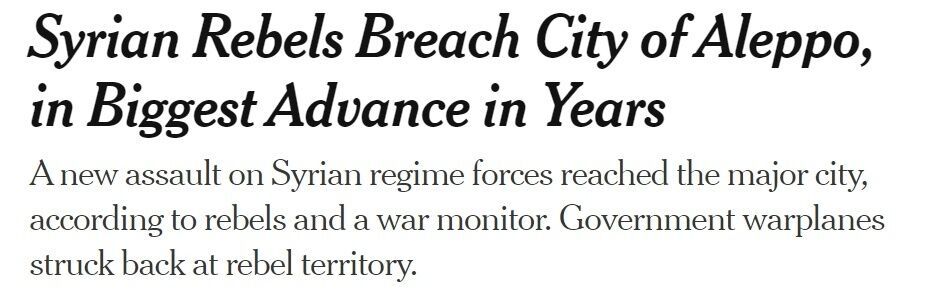 敘利亞軍方11月30日發(fā)表聲明稱,敘反對派武裝當(dāng)天已進(jìn)入敘北部城市阿勒頗大部分地區(qū),并稱敘政府軍將重新部署予以反擊。