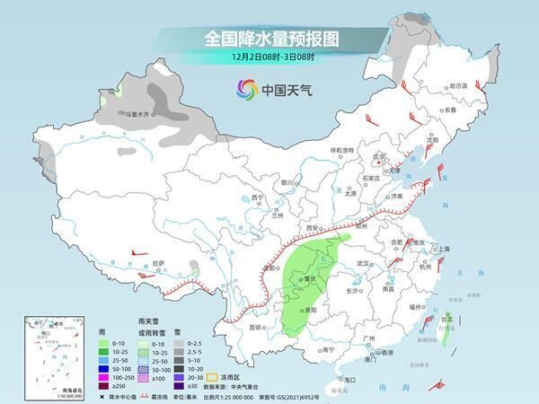后天,新疆沿天山地區(qū)、西藏東南部、內(nèi)蒙古東北部、川西高原北部、黑龍江中東部等地部分地區(qū)有小雪或雨夾雪。江淮大部、江漢、江南北部和西部、西南地區(qū)東部、廣西西北部等地部分地區(qū)有小到中雨。