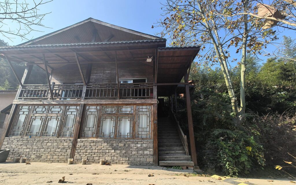 梅花灸治療室位于藥王谷內(nèi)一幢木質(zhì)二層小樓,距離中醫(yī)館四合院不到500米。目前一層已落鎖,二層室內(nèi)除了兩張梅花灸治療床位外,已無物品。