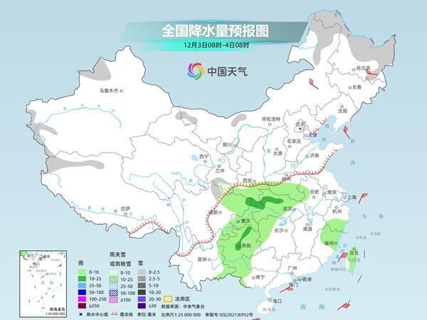 今天(12月3日),冷空氣南下影響江南等地。6日至8日,中東部地區(qū)還將有一次較強(qiáng)冷空氣過程,需注意防范。降水方面,未來三天,東北部分地區(qū)仍然降雪頻繁,同時南方降雨發(fā)展增多。