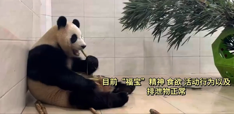 ·“福寶”3日上午出現異常行為至今,飼養(yǎng)和獸醫(yī)人員執(zhí)行24小時監(jiān)護值守。目前,“福寶”精神、食欲、活動行為以及排泄物正常。