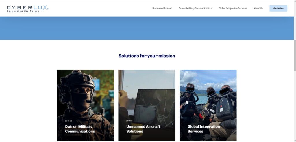 賽博勒克斯公司(Cyberlux?Corporation)成立于2000年,是美國一家國防工業(yè)技術(shù)解決方案公司,提供無人機解決方案、軍事通信設(shè)備,以及軍事訓(xùn)練和咨詢、無人機訓(xùn)練和作戰(zhàn)、彈藥、重型和輕型武器、研究和開發(fā)、士兵系統(tǒng)、通信、技術(shù)集成、網(wǎng)絡(luò)、海上作戰(zhàn)和空中作戰(zhàn)等各個方面的專業(yè)知識。