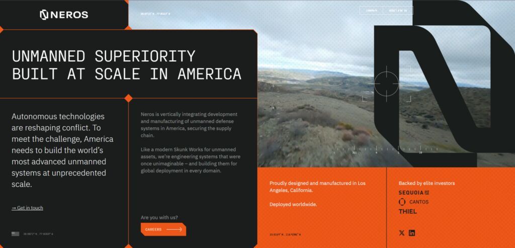 尼羅斯科技公司(Neros Technologies)成立于2023年,是一家無人機初創(chuàng)企業(yè),公司的創(chuàng)始人是前職業(yè)無人駕駛賽車手索倫·門羅·安德森 (Soren Monroe-Anderson) 和奧拉夫·希奇瓦 (Olaf Hichwa),該公司表示,在公司成立數(shù)月內(nèi),就已經(jīng)設(shè)計、制造并運送無人機到烏克蘭戰(zhàn)場。該公司是美國國防部、美國陸軍、空軍和特種部隊的承包商。