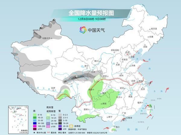 明天,新疆南疆盆地和南疆西部山區(qū)、西藏東部和西北部、青海東南部、甘肅南部、川西高原北部、山東半島等地部分地區(qū)有小雪或雨夾雪,其中,青海南部、甘肅南部、山東半島、川西高原北部等地部分地區(qū)有中到大雪,山東半島等地局地暴雪。