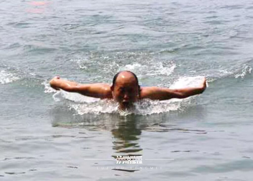 在瀘州市長沱兩江岸邊,經(jīng)常能看見一位65歲的光頭老人,時而扮演“游泳教練”、時而充當(dāng)“勸導(dǎo)員”、時而化身“水上救援人員”。