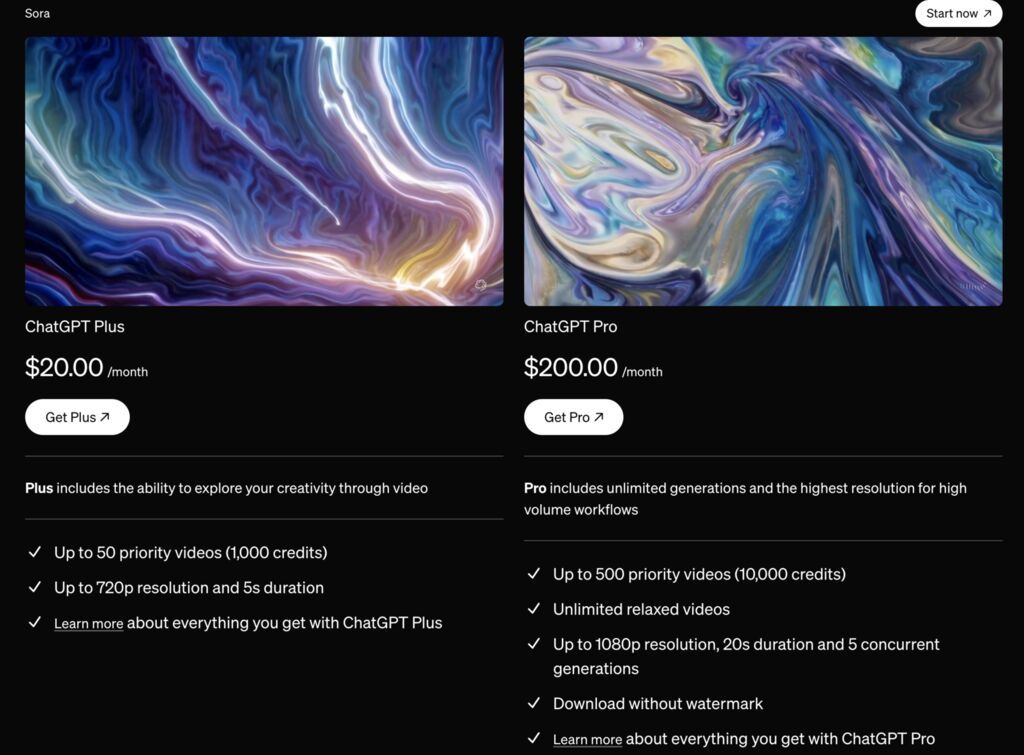 目前,Sora只對ChatGPT Plus和Pro用戶開放,暫不支持免費、團隊等其他類型用戶。
