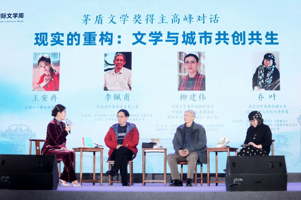 在頒獎(jiǎng)環(huán)節(jié)之外,四川楊紅纓兒童文學(xué)發(fā)展中心舉行了掛牌儀式。李佩甫、柳建偉、喬葉三位茅獎(jiǎng)作家還展開了一場(chǎng)沙龍對(duì)話—-“現(xiàn)實(shí)的重構(gòu):文學(xué)與城市共創(chuàng)共生”。