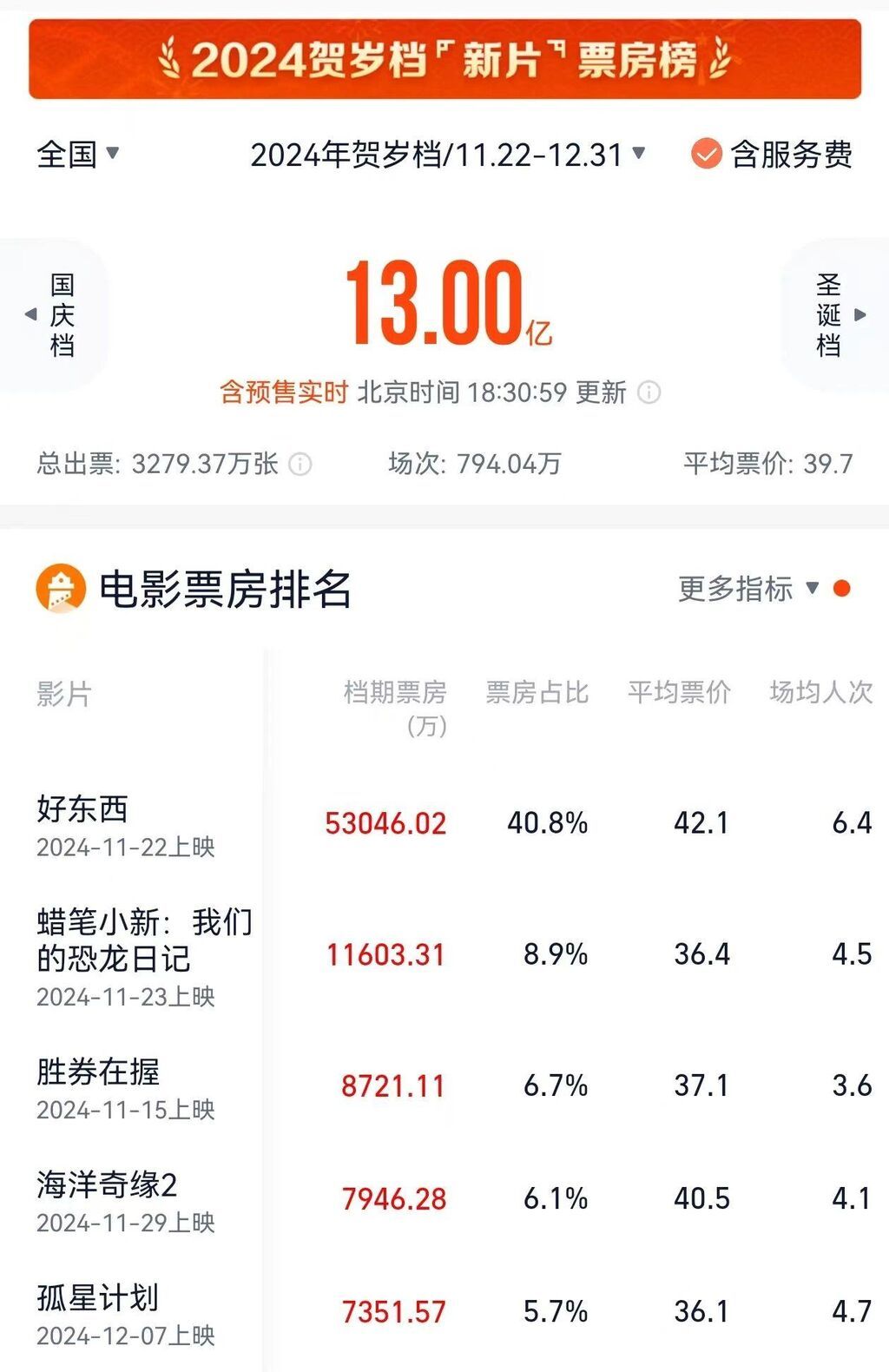 今年賀歲檔在11 月下旬已拉開序幕,喜劇、動畫、音樂等多元類型影片紛至沓來。截至12月10日,2024年賀歲檔檔期票房(含預(yù)售)已突破13億元。12月,還有超35部電影將上映。