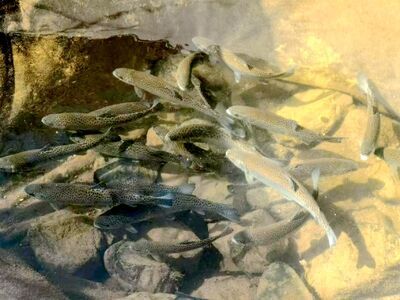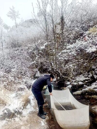 2023年10月,為了尋找最佳的養(yǎng)魚點,駐村工作隊在村內的三條支流開展“魚池+網箱”試養(yǎng)模式,分別投放2批次共600尾魚苗,觀察不同條件對魚苗存活和生長的影響。經過長時間的對比篩選,最終確定了適合養(yǎng)殖虹鱒魚的最佳地點。
