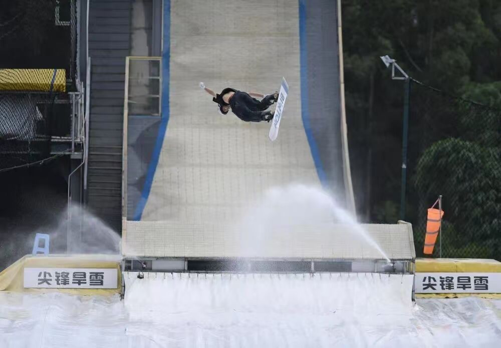 以目前中國西南地區(qū)規(guī)模最大的旱雪場(chǎng)——新都尖鋒四季旱雪場(chǎng)為例,不僅能為國際國內(nèi)專業(yè)冰雪隊(duì)伍提供反季節(jié)冰雪訓(xùn)練,還承接了全國自由式滑雪和單板滑雪氣墊大跳臺(tái)青年錦標(biāo)賽等賽事,知名運(yùn)動(dòng)員谷愛凌、蘇翊鳴等多次來到此封閉訓(xùn)練。
