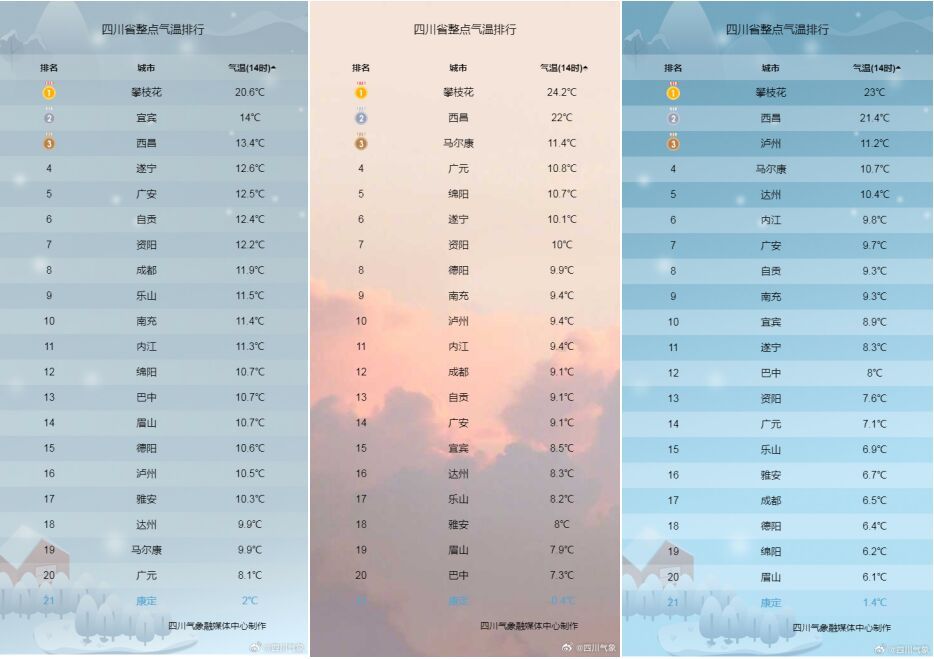 今天(12月11日),太陽在成都市區(qū)打了幾個(gè)照面,成都日最高氣溫達(dá)到了12.6℃,出現(xiàn)在簡陽。