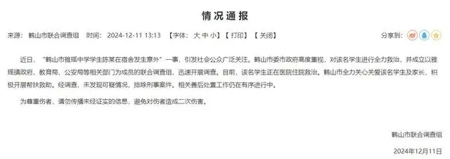 ·廣東鶴山通報(bào)“中學(xué)學(xué)生在宿舍發(fā)生意外”:正在醫(yī)院住院救治,未發(fā)現(xiàn)可疑情況,排除刑事案件。