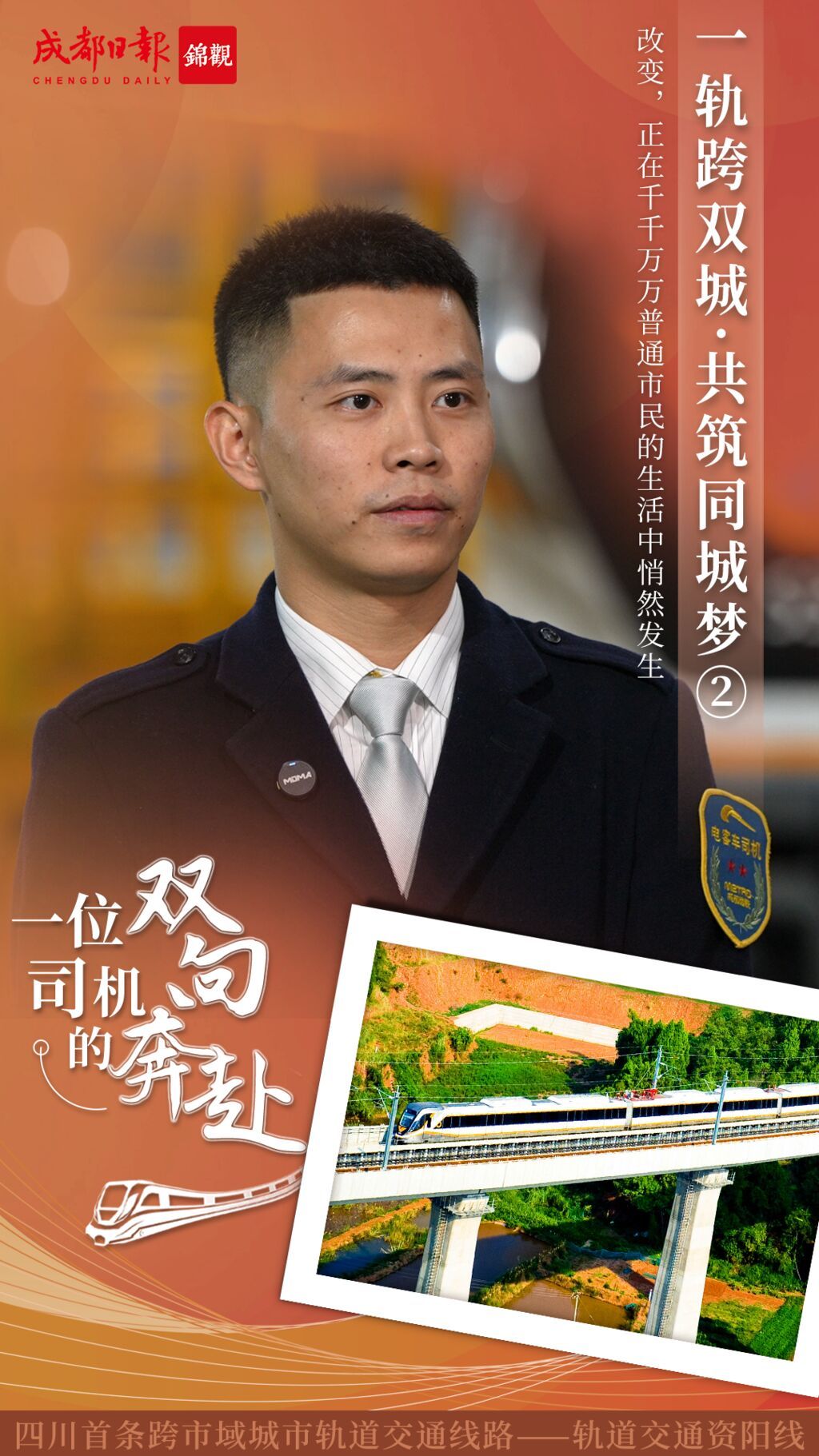11日起,成都日?qǐng)?bào)錦觀新聞特別推出《一軌跨雙城·共筑同城夢(mèng)》系列報(bào)道,從普通市民、首發(fā)司機(jī)和線路總設(shè)計(jì)師的視角,講述更多關(guān)于資陽線改變生活、優(yōu)化工作、描繪未來的背后故事。
