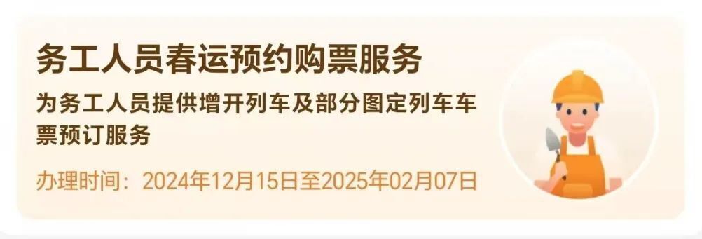 務(wù)工人員預(yù)約購票服務(wù)上線