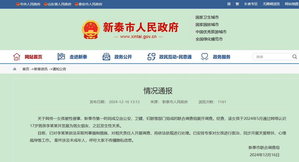 ·山東新泰通報(bào)“12歲女孩感染HPV”:其17歲男友被采取刑事強(qiáng)制措施。