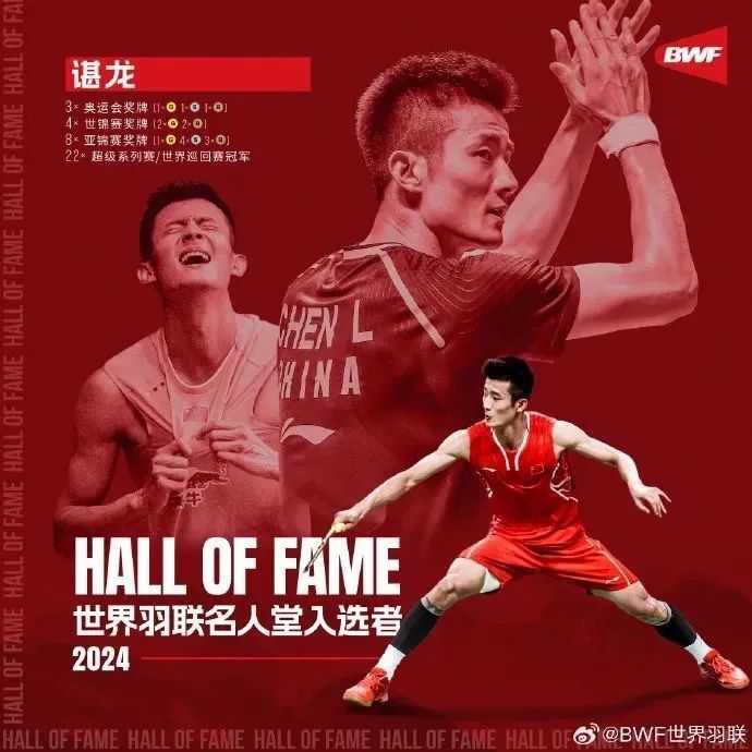 諶龍剛剛?cè)脒x2024年世界羽聯(lián)名人堂