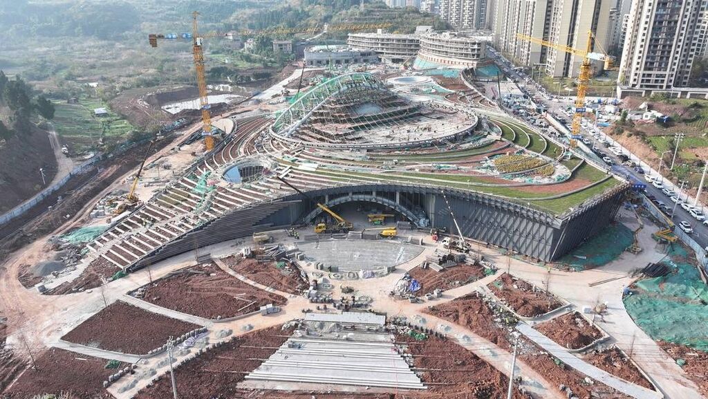 目前,該項(xiàng)目主體工程已全面完工。內(nèi)部裝飾、幕墻裝飾、園林景觀、泛光照明等項(xiàng)目正同步進(jìn)行,整體進(jìn)度已完成約90%。再有一個(gè)月,便是項(xiàng)目初期交付的日子。屆時(shí),當(dāng)?shù)貙⒂瓉?lái)全川唯一一座石窟數(shù)字展示中心,新增一處地標(biāo)性旅游首站落腳點(diǎn)。