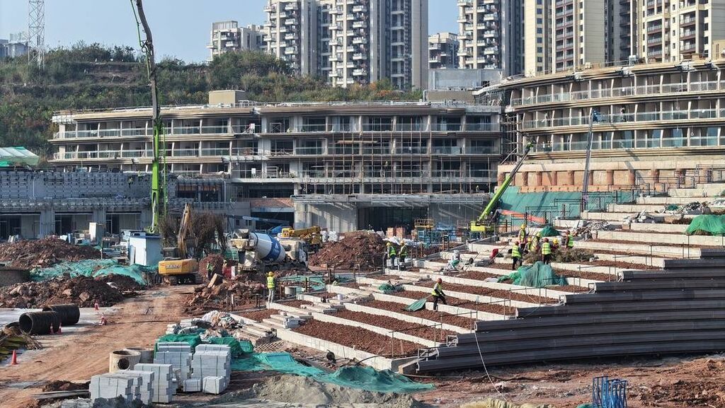 12月18日,四川資陽(yáng)市安岳縣安岳石窟數(shù)字展示中心項(xiàng)目現(xiàn)場(chǎng),517名工人來(lái)回穿梭,建設(shè)氛圍火熱。