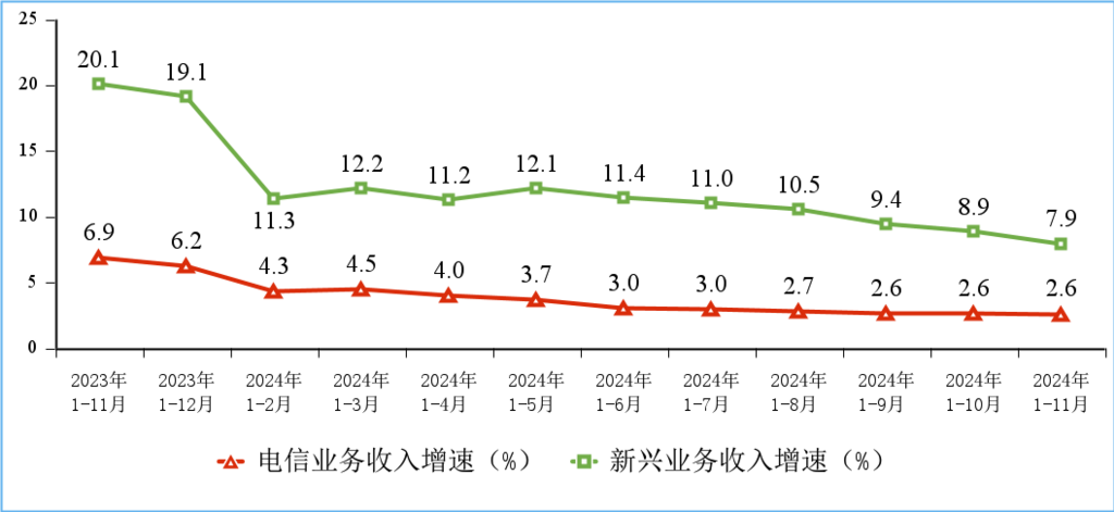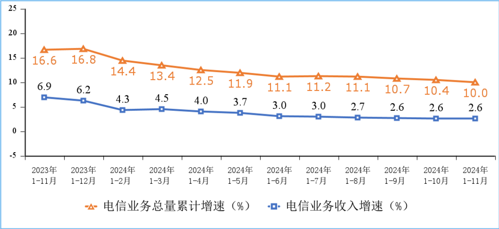 央視網(wǎng)消息:據(jù)工信微報微信公眾號消息,12月23日,工信部發(fā)布2024年前11個月通信業(yè)經(jīng)濟運行情況。