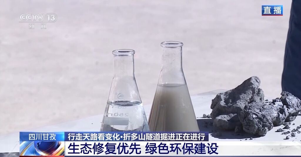總臺記者 陳凱:在這發(fā)現(xiàn)了一個細(xì)節(jié),因為我們在施工的過程當(dāng)中會產(chǎn)生很多的施工廢水。這些挖隧道的廢水通常比較渾濁。它除了渾濁之外,還會有一些堿性的物質(zhì),如果隨意排放,會對周邊的生態(tài)造成影響。為此,施工方專門引進了一套國內(nèi)先進的污水處理設(shè)備。經(jīng)過處理的水非常清澈,可以達到污水排放的一級標(biāo)準(zhǔn)。