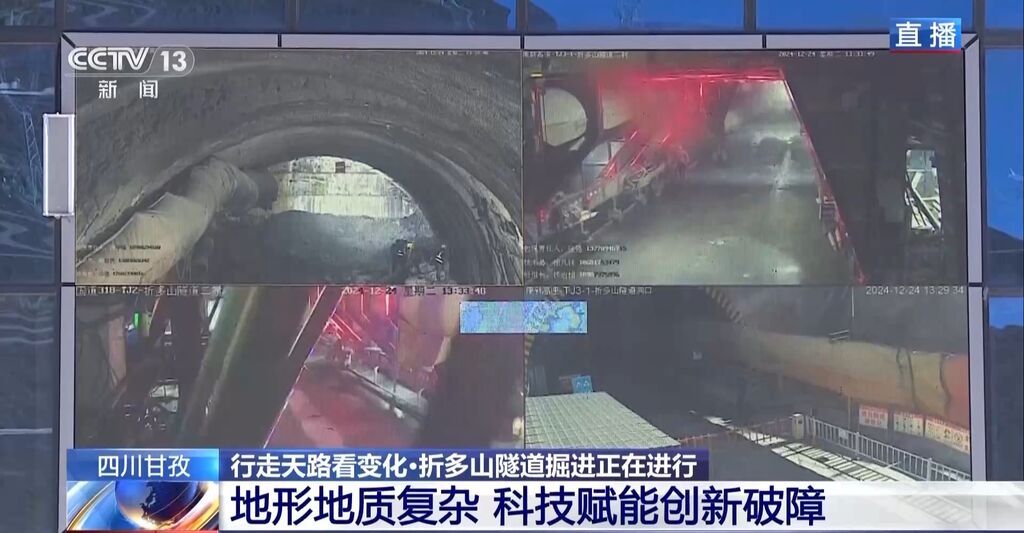總臺記者 陳凱:通過設(shè)置在隧道口信息中心的實時監(jiān)控大屏,我們能夠看到最新的施工進展,可以看到,施工人員正在對隧道進行掘進。在它的中間有先進的施工臺車組成的施工平臺。過去在挖掘隧道的時候有很多工人,但是現(xiàn)在,幾個工人操作機械設(shè)備就可以一邊挖掘,一邊用鋼結(jié)構(gòu)的鋼架對隧道進行支撐,同時進行加固和硬化,可以說在這樣一個海拔接近四千米的施工現(xiàn)場,建設(shè)者們用鋼結(jié)構(gòu)的方式貫穿這條意義重大且險峻的隧道。