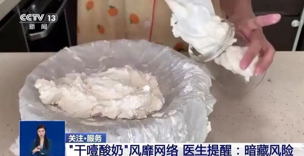 近期,一種可以嚼著吃的“干噎酸奶”引起大家關(guān)注。不少網(wǎng)友發(fā)布品嘗視頻,展示其干噎程度,并調(diào)侃“咽的時候脖子要伸得很長”“吃完這款酸奶脖子能長出八塊腹肌”。隨著這款酸奶的火爆,有人開始嘗試自己制作,然而制作過程隱藏著潛在的食品安全風險。
