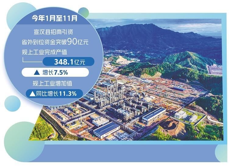 用好資源“優(yōu)勢圈”、深入優(yōu)化“服務(wù)圈”、不斷擴大“朋友圈”,宣漢今年已引進23家投資億元以上工業(yè)企業(yè)落地開工。1月至11月,該縣招商引資省外到位資金突破90億元,居達州市第一位。截至目前,普光經(jīng)開區(qū)累計入駐企業(yè)133家。