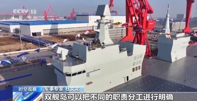 軍事專家 杜文龍:076型兩棲攻擊艦不僅可以攜帶重型戰(zhàn)斗艦載機完成作戰(zhàn)任務(wù),還可以通過電磁彈射多種戰(zhàn)斗型的無人機完成作戰(zhàn)任務(wù)。所以從艦載機的種類、規(guī)模,包括出動強度和作戰(zhàn)任務(wù)去分析,和準航母大致相同。