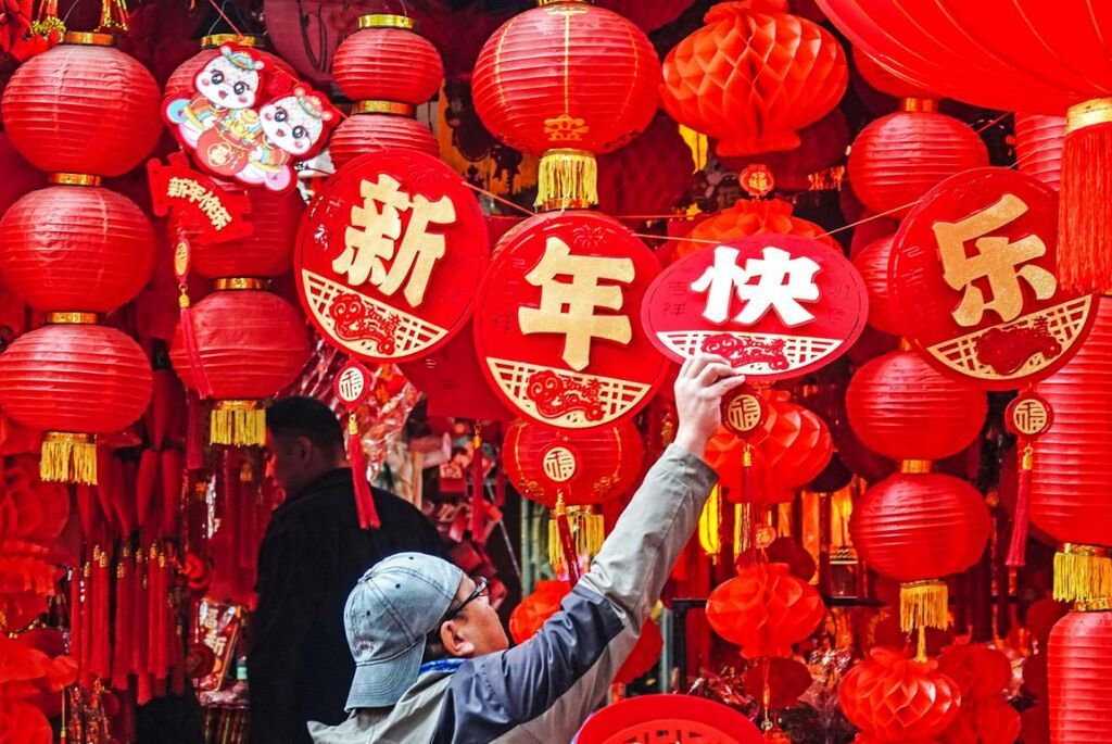12月31日,廣西南寧,市民在上海路年貨街選購新年飾品,在紅火喜慶的氛圍中迎接新年。