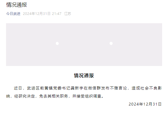 ·江蘇常州一鄉(xiāng)鎮(zhèn)書記在微信群發(fā)布不雅言論,被免職并接受調(diào)查。