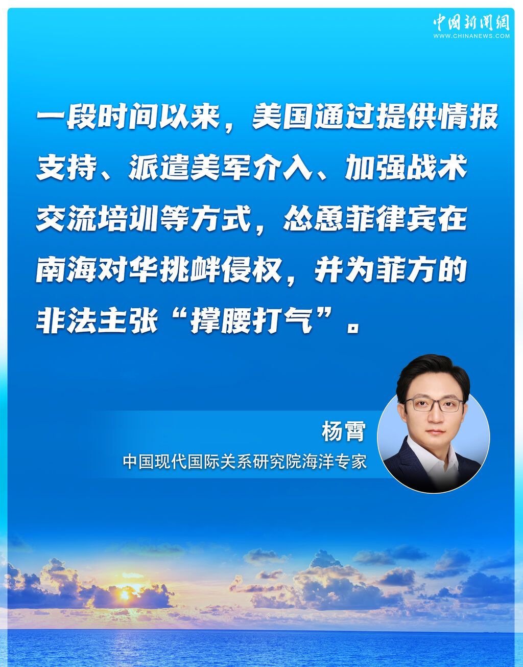 中新網(wǎng)1月3日電 基于自身地緣政治私利,美國不斷慫恿、支持菲律賓等盟友在南海尋釁滋事,甚至親自下場組團攪局,嚴重威脅地區(qū)和平穩(wěn)定,中國現(xiàn)代國際關(guān)系研究院海洋專家楊霄近日在接受中新網(wǎng)記者采訪時指出。