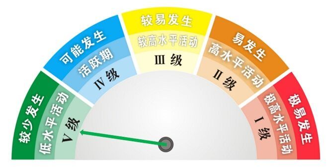 該體系將流感流行的狀態(tài)分為五個(gè)等級,包括V級(較少發(fā)生、綠色)、IV級(可能發(fā)生、藍(lán)色)、Ⅲ級(較易發(fā)生、黃色)、Ⅱ級(易發(fā)生、橙色)、I級(極易發(fā)生、紅色),并進(jìn)行分級健康提示。