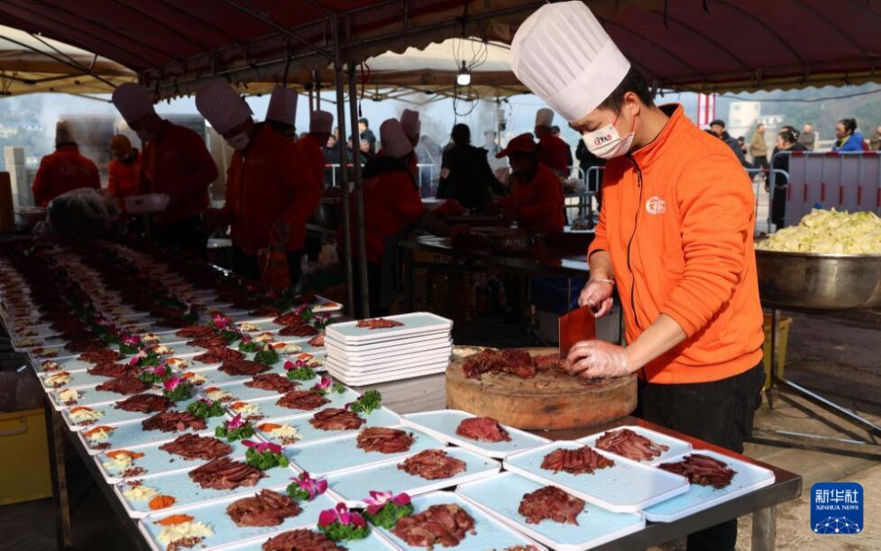 1月5日,四川省廣安市武勝縣第十二屆庖湯民俗文化活動(dòng)在沿口古鎮(zhèn)舉行。吃庖湯是川東北地區(qū)極具特色的傳統(tǒng)民俗活動(dòng),有慶豐年、謝鄰里、祈未來(lái)之意。