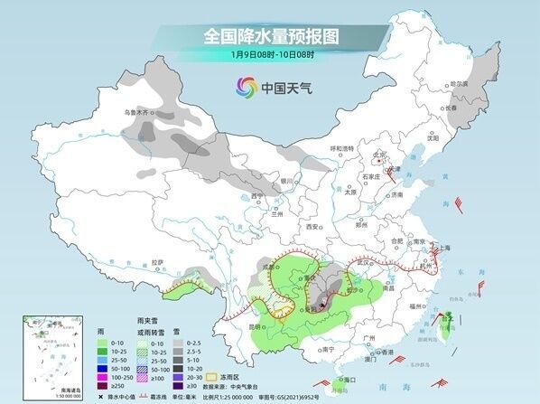 明天,內(nèi)蒙古中東部、黑龍江大部、吉林大部、山東半島北部、新疆北部、西藏東部、青海東南部、川西高原、四川南部、重慶中東部和北部、貴州西北部和東北部、云南西北部和東北部、湖南西北部、湖北西南部等地部分地區(qū)有小到中雪或雨夾雪,其中,新疆伊犁河谷、西藏東部、川西高原等地部分地區(qū)有大到暴雪。貴州西部部分地區(qū)有凍雨。四川中東部、重慶、湖南西部、貴州、云南大部、廣西西北部、海南島中東部、雷州半島、臺灣島東部等地部分地區(qū)有小雨,其中,西藏東南部、重慶東南部、貴州西南部和中部、云南東北部等地部分地區(qū)有中雨。