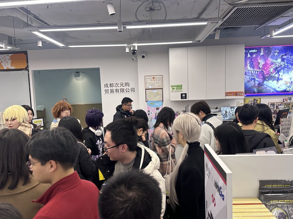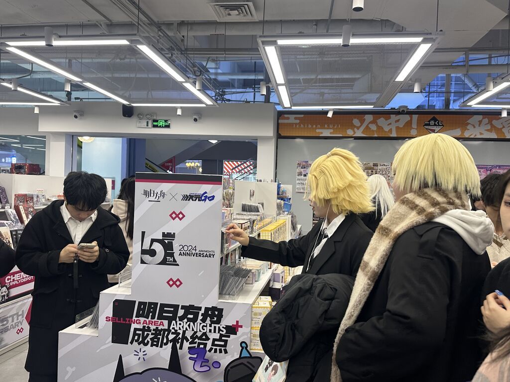 位于商場(chǎng)5樓的次元GO人氣非?;鸨浾哂^察到,店內(nèi)產(chǎn)品以二次元周邊為主,包括《明日方舟》《原神》等大火手游IP?!白蚤_(kāi)業(yè)以來(lái),我們店的人氣一直很旺,消費(fèi)者以年輕人為主,人均消費(fèi)在100元左右?!痹摰甑觊L(zhǎng)小雨一邊整理貨物,一邊告訴記者,“今年元旦當(dāng)天,店鋪的日營(yíng)業(yè)額突破了10萬(wàn)元,而在寒暑假高峰期,月銷(xiāo)售額超過(guò)100萬(wàn)元。”