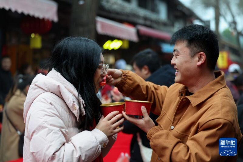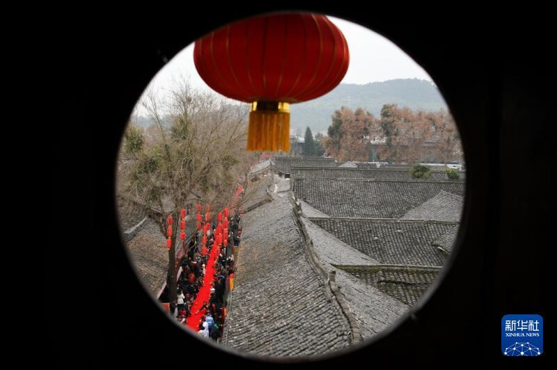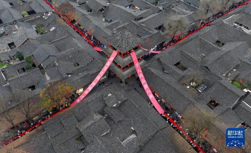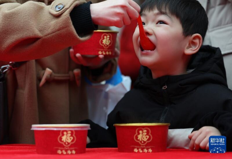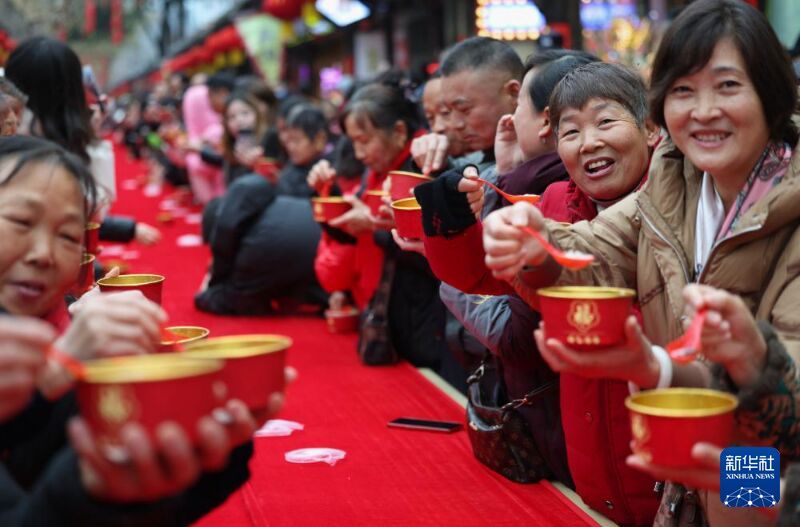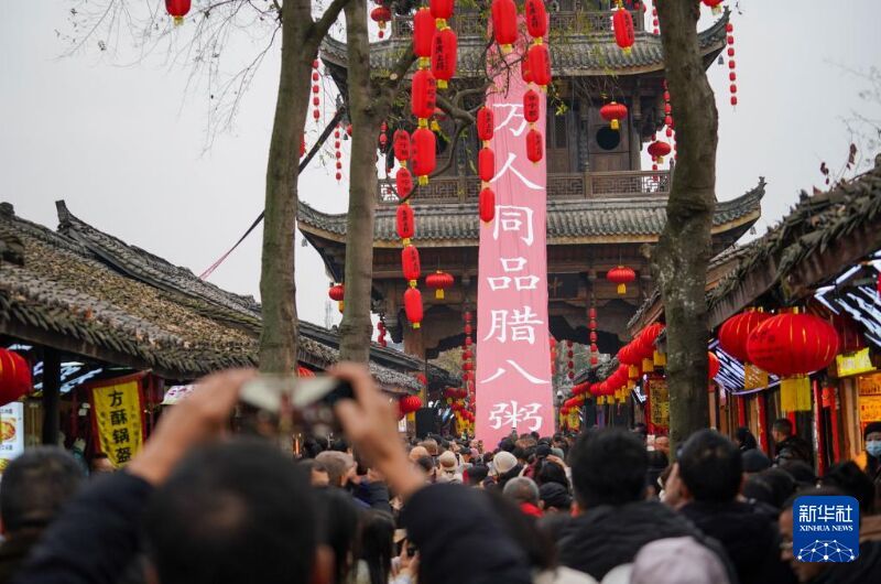 1月7日是臘月初八,四川南充閬中古城舉行“萬人同品臘八粥”活動,眾多當?shù)鼐用窈陀慰蛧@在閬中古城中天樓免費享用臘八粥。