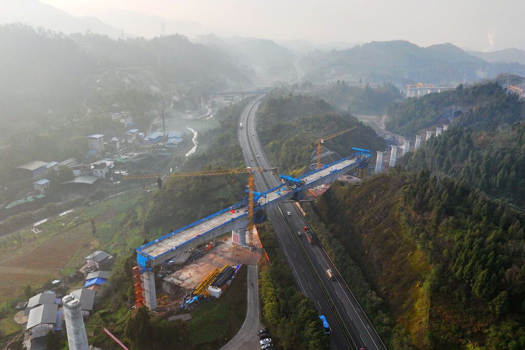 同樣設(shè)計(jì)時(shí)速350公里的西渝高鐵也有新進(jìn)展。1月5日,由中鐵四局承建的西安至重慶高速鐵路安康至重慶段(以下簡(jiǎn)稱(chēng)“西渝高鐵康渝段”)檳郎特大橋連續(xù)梁實(shí)現(xiàn)合龍,為全線如期建成通車(chē)奠定堅(jiān)實(shí)基礎(chǔ)。該橋位于達(dá)州市境內(nèi),全長(zhǎng)1314米,采用連續(xù)梁跨越G65包茂高速公路。