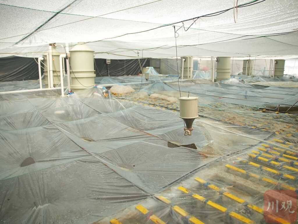 2015年,宋永科在大邑縣安仁鎮(zhèn)流轉(zhuǎn)200畝水面,探索白對蝦露天養(yǎng)殖?;?年時(shí)間完成技術(shù)積累后,2022年,宋永科斥資2000萬元,在安仁鎮(zhèn)五合社區(qū)建成了西南片區(qū)最大的工廠化南美白對蝦養(yǎng)殖基地。目前,基地占地29畝,擁有78個標(biāo)準(zhǔn)化養(yǎng)殖池,年設(shè)計(jì)產(chǎn)能50萬斤。去年,實(shí)現(xiàn)出塘40多萬斤。