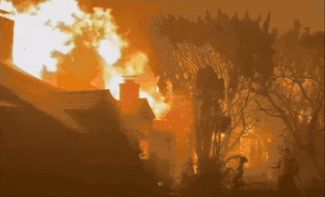 數(shù)千座建筑在火災(zāi)中損毀,其中包括好萊塢明星的豪宅,如蝙蝠俠扮演者的價(jià)值2050萬(wàn)美元的住所。另有上萬(wàn)棟建筑處于危險(xiǎn)之中。