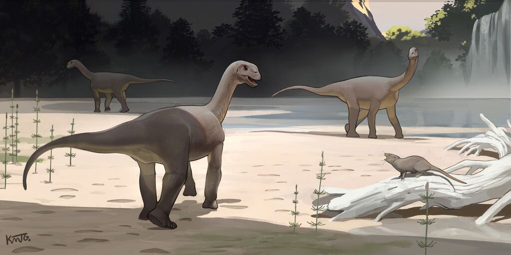 據(jù)了解,蜥腳類恐龍的成年個(gè)體與幼年個(gè)體有著巨大的體型差異,二三十米長的巨型蜥腳類恐龍,其幼龍剛破殼而出時(shí)體長還不到半米。