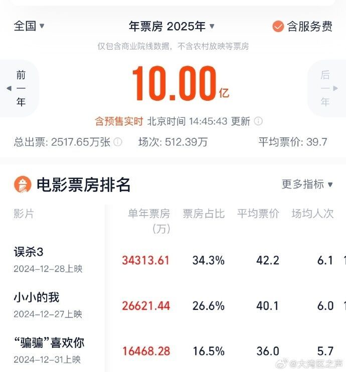 《誤殺3》《小小的我》《“騙騙”喜歡你》暫列當(dāng)月票房前三位。