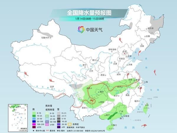 后天,內(nèi)蒙古東北部、黑龍江中東部、吉林東部、新疆沿天山地區(qū)、西藏東北部、安徽南部、川西高原和四川南部等地部分地區(qū)有小雪或雨夾雪。安徽中南部、湖北大部、湖南北部和西部、貴州大部、四川南部、廣西東部、廣東大部、臺灣島等地部分地區(qū)有小雨,其中,廣西東南部、廣東西部等地部分地區(qū)有中雨。