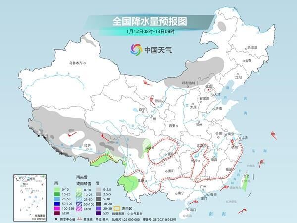 今后三天,我國雨雪天氣總體在發(fā)展增多,青藏高原至西南地區(qū)東部自西向東將有一次雨雪天氣過程。其中今天,內(nèi)蒙古中部和東部、西藏大部、川西高原北部等地部分地區(qū)有小到中雪或雨夾雪,西藏南部和西部等地部分地區(qū)有中到大雪,局地暴雪。西藏東南部、四川盆地西南部、云南中西部、臺灣島東部等地部分地區(qū)有小雨。