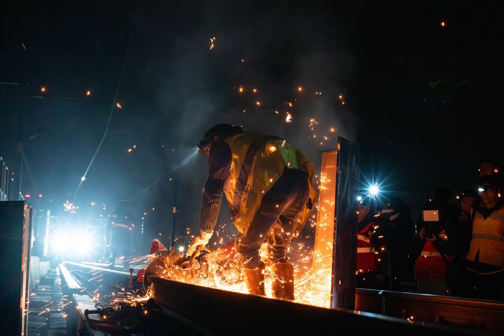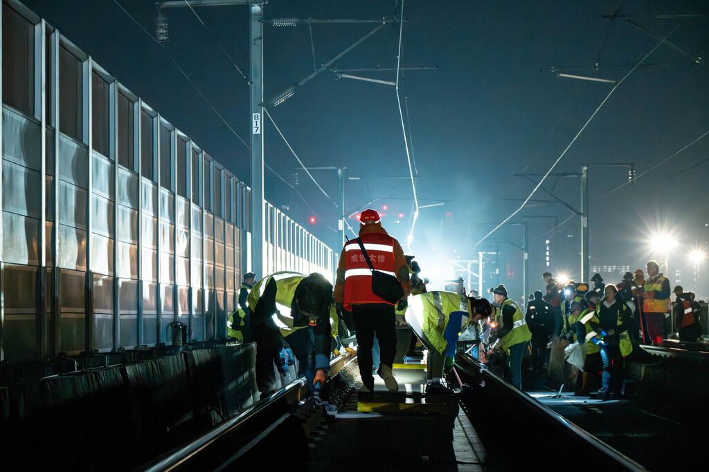 針對(duì)多家單位協(xié)同作戰(zhàn)的實(shí)際情況,綿陽車務(wù)段落實(shí)施工制度,施工登銷記、進(jìn)路準(zhǔn)備、調(diào)度命令傳達(dá)等關(guān)鍵環(huán)節(jié)嚴(yán)格執(zhí)行;成都高鐵工務(wù)段強(qiáng)化換軌全過程盯控,保障新舊軌更換、焊接參數(shù)、應(yīng)力放散等工序安全達(dá)標(biāo),接續(xù)做好線路精測精調(diào)與焊縫探傷;成都電務(wù)段落實(shí)營業(yè)線施工安全制度,做好換軌前牽引回流溝通、軌道電路連接線拆除安裝和換軌后的測試、應(yīng)答器的提前拆除安裝及報(bào)文編寫,確保施工有序推進(jìn)。