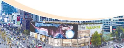 裸眼3D大屏上,熊貓嬉戲。忽然,熊貓爪子抓住屏框,仿佛即將走出屏幕……