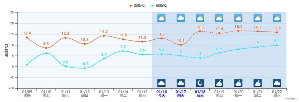 1月16日,是三九的最后一天,成都天氣雖然陰沉,但薄羽絨服也足以應(yīng)對。這已是目前這輪冷空氣最后的威力——今天冷空氣影響趨于尾聲,一個(gè)大尺度的暖高壓脊將東移影響我國,我們將在一片暖中迎來大寒節(jié)氣。
