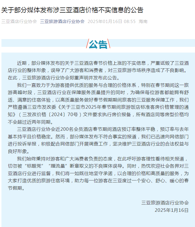 ·22萬(wàn)一晚酒店被訂光?三亞酒店行業(yè)協(xié)會(huì):春節(jié)期間價(jià)格穩(wěn)定。