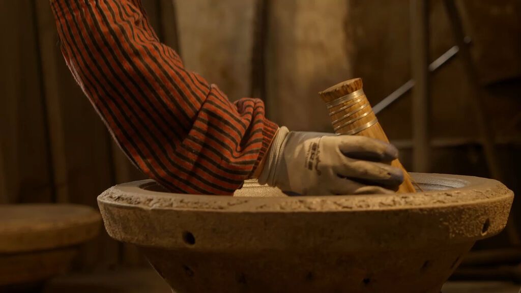 從小生長(zhǎng)在馬角鎮(zhèn)的楊賢成對(duì)鑄鍋文化耳濡目染,深感興趣,為了不讓這門手藝失傳,楊賢成選擇傳承這門手藝:“當(dāng)時(shí)有鑄鍋手藝的匠人越來越少,我希望我能夠?yàn)榻蛡鹘y(tǒng)文化傳承出一份力,就毅然決然地拜師學(xué)藝了?!?/p>