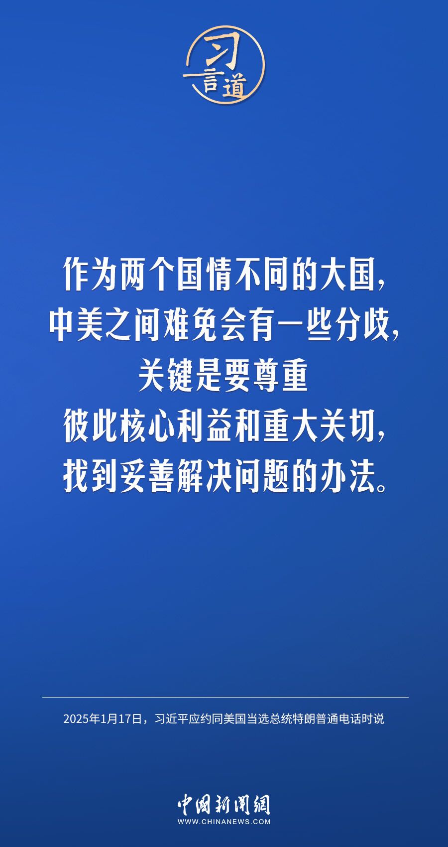 1月17日晚,國家主席習近平應約同美國當選總統(tǒng)特朗普通電話。習近平指出—